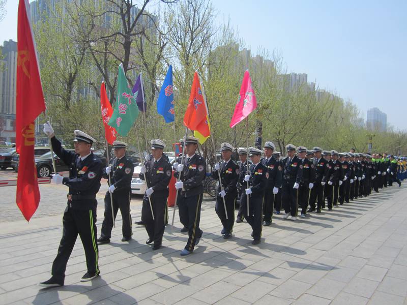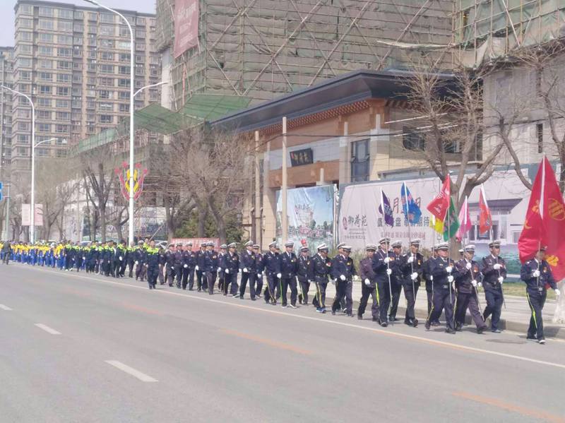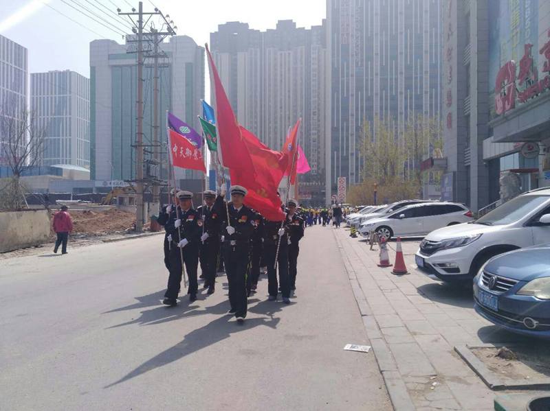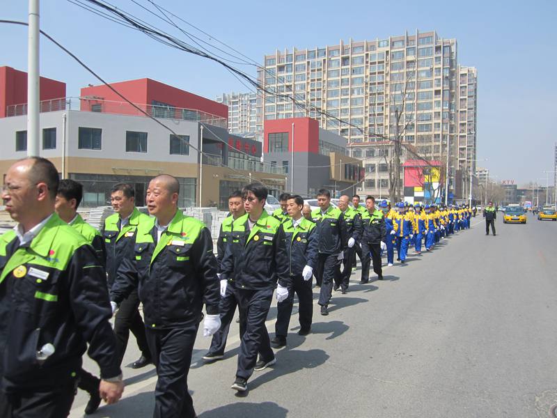 當(dāng)天中午12點(diǎn)整,來自中天御景華庭、中天壹品、中天君臨天下、中天尚品、中天桃花源、中天御景灣六個(gè)物業(yè)小區(qū)的員工,身著由物業(yè)公司配發(fā)的統(tǒng)一服裝,整齊地聚集在集團(tuán)總部門前,整裝待發(fā),伴隨著物業(yè)公司總經(jīng)理王化啟一聲令下,徒步活動(dòng)正式拉開序幕。隊(duì)伍浩浩蕩蕩,呼喊著嘹亮的口號(hào),整齊地走在大街上,展現(xiàn)了中天物業(yè)人的良好形象。