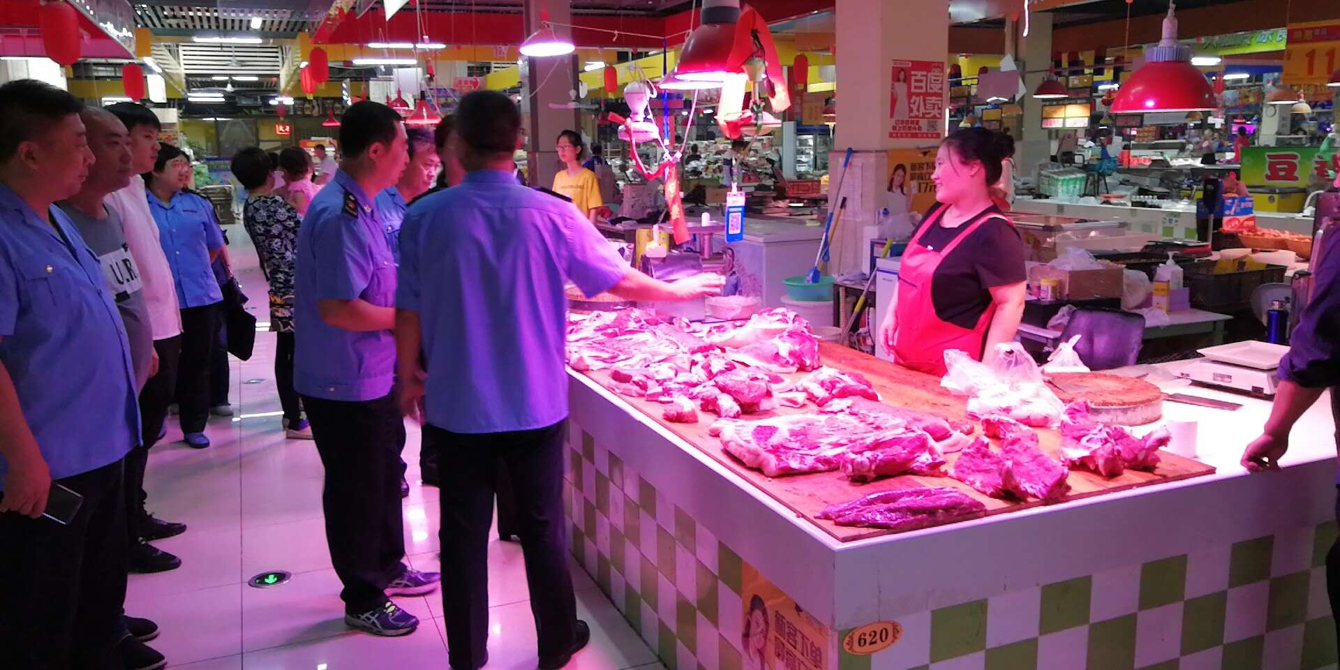市、區食品藥品監督局領導到中天農貿市場對生肉品攤位進行檢查,對市場的環境和服務給予高度的評價!此次檢查的全部商戶“證、照”齊全。我們要讓百姓放心、安全的到中天農貿市場來購物。