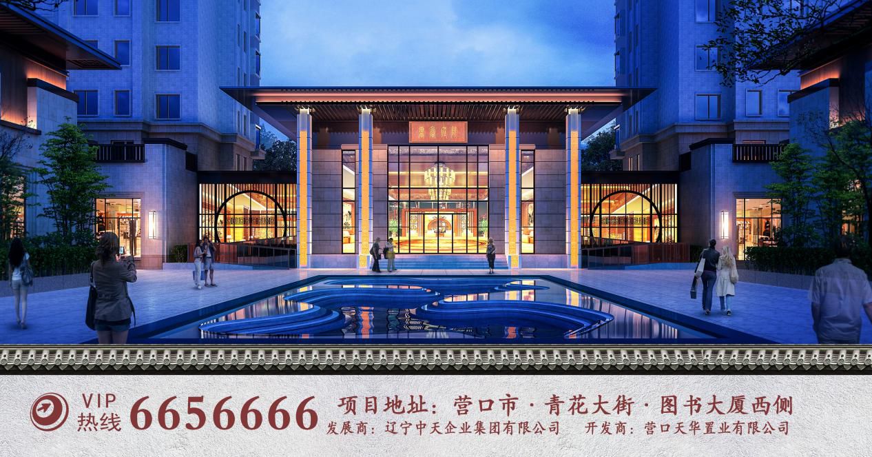 中天集團旗下營口天華置業有限公司負責該項目的開發建設任務,項目將集中天集團18年房地產開發經驗之大成,匯集中天桃花源、中天御荷苑等十余個項目建設之成功案例,高水準規劃建設。項目將以住宅為主,綠地面積高達63000平方米,綠化率占比50%。園區內將建設一條面積約為6000平方米的主景觀帶。項目總建筑面積350000平方米,其中地上建筑面積約280000平方米,地下70000平方米,北側沿青花大街為獨立商業步行街區。項目以現代新中式風格為設計理念,規劃建筑住宅34棟,其中一期規劃建設住宅20棟,包含17-24層瞰景高層10棟、6-9層電梯多層7棟以及3層聯排別墅3棟,面積區間100-300平方米,產品系豐富。主景觀區以2000平方米書香湖為核心,匠心打造新中式園林勝景。