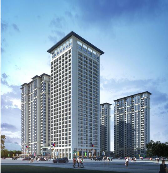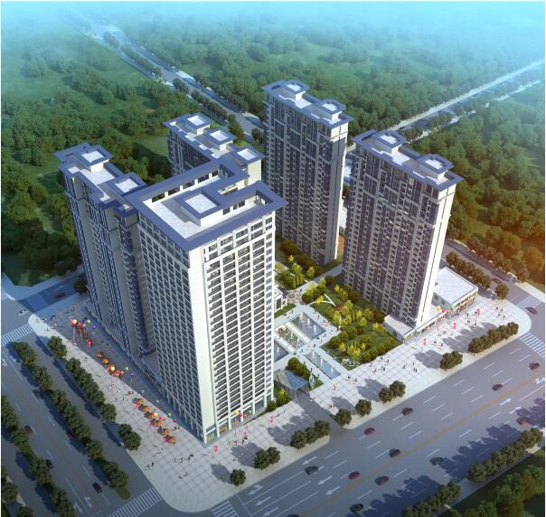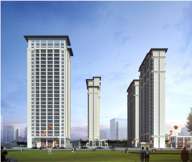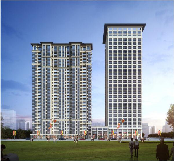 本項目規劃用地面積為2.2萬平,總建筑面積約為10.2萬平,其中住宅8.2萬平,共898戶,地下車庫1.3萬平,車位210個,車庫70個。商業7000平,共57戶,園區配套用房1000平。地上規劃布局5棟26至28層單體建筑、沿街一至二層商業服務網點、地下人防車庫。