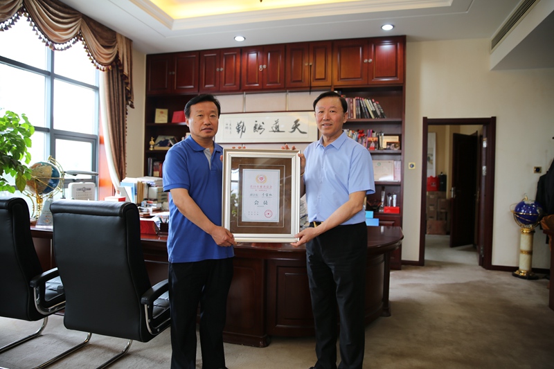 5月30日,市政協原副主席、市慈善總會顧問王興邦,市慈善總會常務副會長唐新會等一行領導來到集團總部。特為于董事長送上第三屆慈善總會副會長牌匾,并對于董事長的當選表示祝賀。