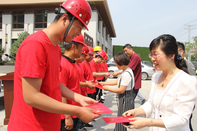 此次慰問活動由集團綜合管理部張佐朋經理主持,他首先代表建筑公司對西市區政府、區工會和得勝街道多年來對中天集團的支持與幫助表達了衷心的感謝,隨后請總工會張相勝主席、王毅副主席、李靜波主任、張建軍副書記為員工代表發放慰問金。