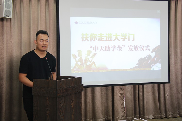 蓋州市第一高級(jí)中學(xué)張靈普同學(xué)代表學(xué)生發(fā)言,表達(dá)了對(duì)中天集團(tuán)的感激之情,并表示不辜負(fù)中天集團(tuán)的希望,將以一份感恩的心發(fā)奮學(xué)習(xí),學(xué)有所成,回饋社會(huì)。