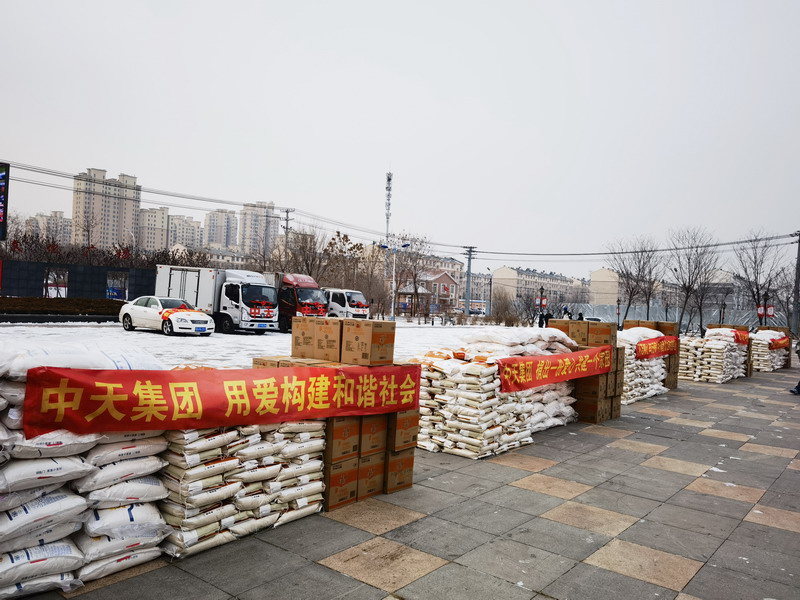 歲末寒冬迎春節,真情慰問暖人心。2021年2月3日,在集團于寶權董事長的帶領下,滿載大米、面粉和豆油的五輛大卡車,直赴營口市西市區得勝街道紅運社區廣場,在這里即將舉行中天集團扶貧物質發放儀式,在新年來臨之際,為營口市區西部的600戶貧困居民每戶發放一袋大米、一袋面粉和一桶豆油。這已經是中天集團自2010年起連續十二年舉辦該活動,為的就是讓這些貧困家庭能夠過上一個快樂祥和的新年。