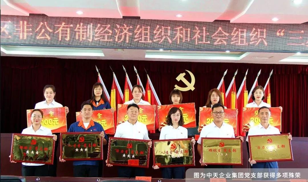 為了總結交流“兩新”組織黨建工作經驗,表彰先進,鼓舞干勁,進一步提升全區“兩新”組織黨建工作質量,促進“兩新”組織健康發展,在建黨100周年之際,西市區委組織部組織了本次表獎活動。會上授予六家非公企業為“星級”黨支部,中天企業集團黨支部作為“活力星”在會上作了先進典型交流發言。