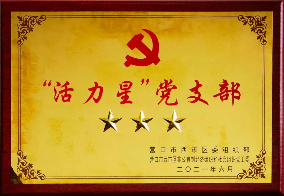 2021年6月29日,中共營口市西市區委組織部召開“兩新”組織表獎大會,表獎全區非公有制經濟組織和社會組織“三星”黨支部,中天企業集團黨支部獲得“活力星”榮譽稱號。