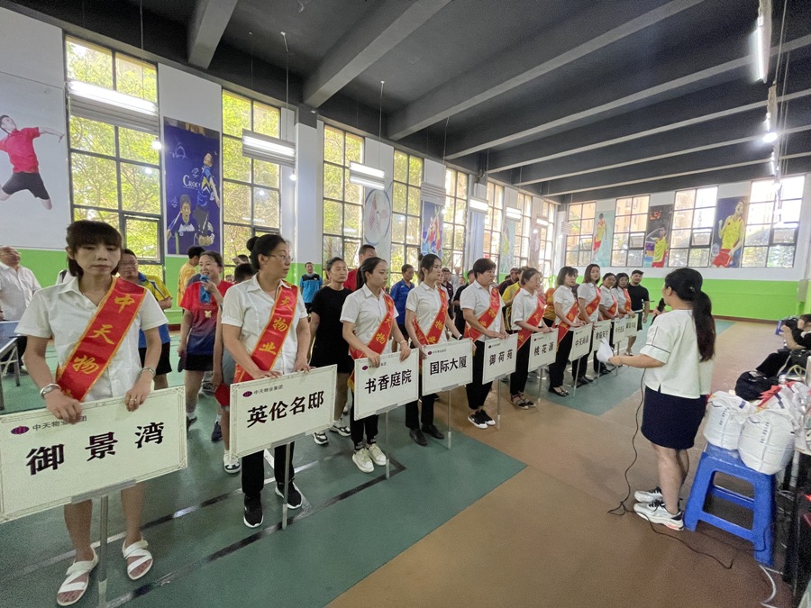 8:30分至9點是運動員檢錄時間,物業公司細心準備了接待工作,檢錄完畢物業集團總經理王化啟向參賽選手致辭,隨后物業集團總經理助理富志剛帶領運動員進行5分鐘熱身運動,同時根據抽簽將對陣圖制作完畢,9點20分,比賽正式開始。