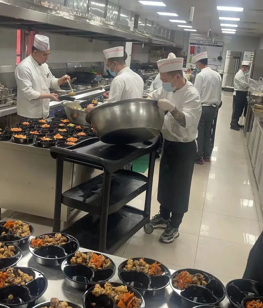 酒店公司面對(duì)疫情來(lái)臨,迅速準(zhǔn)備了200多個(gè)房間,供醫(yī)療團(tuán)隊(duì)使用。每天準(zhǔn)備上千份午餐,供給一線的防疫人員食用。廚房人員加班加點(diǎn),再苦再累沒(méi)有人計(jì)較得失,保質(zhì)保量,按時(shí)將盒飯送到防疫人員手中。