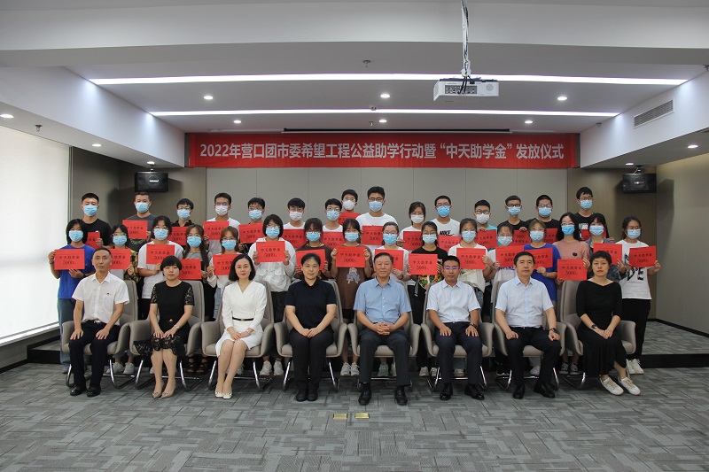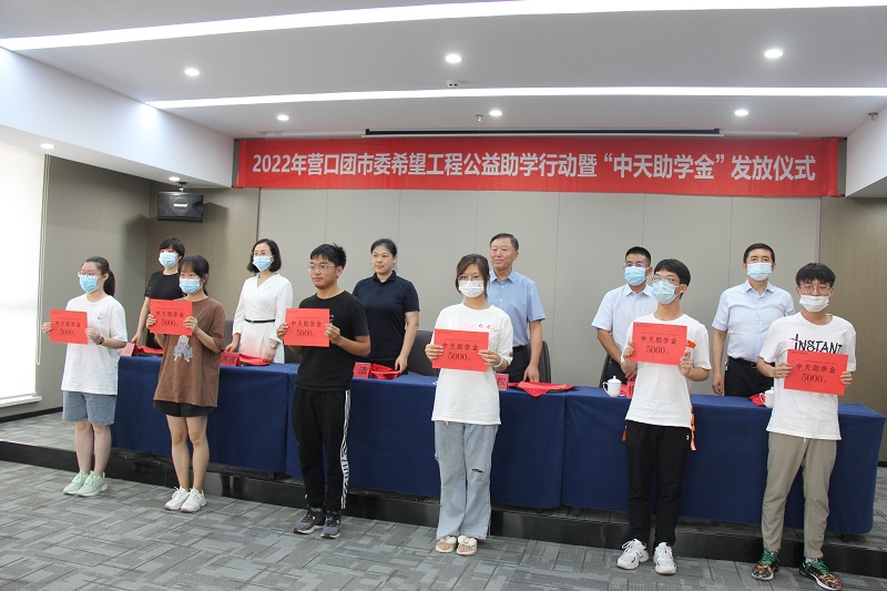 8月9日上午,2022年營口市希望工程公益助學(xué)活動暨“中天助學(xué)金”發(fā)放儀式在中天集團(tuán)總部會議室舉行。營口市團(tuán)市委書記白潔,中天企業(yè)集團(tuán)董事長于寶權(quán)、總裁于洪波,營口市教育局副局長柳向暉,營口市慈善總會副會長黃渤,營口市團(tuán)市委副書記梁嫚以及獲得資助的31名學(xué)生,出席了本次發(fā)放儀式。