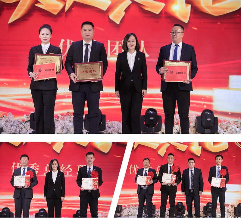 周春雷副總裁宣讀了集團2022年度表獎決定,撫順城市公司、酒店管理公司、集團總部工程管理部三個單位獲得優(yōu)秀團隊;盤錦城市公司總經(jīng)理孫福興、物業(yè)集團公司總經(jīng)理王化啟獲得優(yōu)秀總經(jīng)理;總部財務管理中心總監(jiān)徐寶亮、總部項目管理中心總設計師盧詩揚獲得優(yōu)秀總監(jiān);錦州城市公司副總經(jīng)理馬泰獲得優(yōu)秀副總經(jīng)理;撫順城市公司銷售總監(jiān)張喆、營口城市公司財務總監(jiān)李駿世、總部人力資源部副經(jīng)理王慧博三人獲得優(yōu)秀經(jīng)理;總部財務管理中心IT負責人欒天舒等38人獲得優(yōu)秀員工;撫順城市公司學府壹號項目置業(yè)顧問李純等9人獲得銷售標兵。會上,舉行了隆重的表獎儀式。