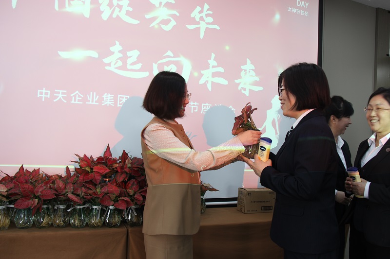節日來臨之際,集團給女職工準備了三件禮物:一本書、一瓶化妝品、一瓶鮮花。一本書表示希望大家多學習,不斷地豐富自己,做職業女性,做職場上的強人;一瓶化妝品表示希望大家能保護好自己,保持身體健康,讓自己生活的漂亮;一瓶鮮花表示我們的生活像花兒一樣,明媚嬌艷,光彩照人,希望全體女職工能成為中天快樂、生動、專業、亮麗的風景線。
