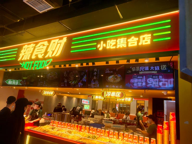 此次考察之行重點關注對象為特色美食街區及大連比較受歡迎的娛樂項目品類。作為大連乃至遼寧首屈一指的美食城運營品牌——亞惠餐飲,幾乎在大連當地所有大型商場都能見到它的身影。在大連經營多年,掌握著相當數量的餐飲商戶資源,其整體運營模式非常成熟,以前店后廠的現場加工售賣的檔口形式呈現,糅合自營與租賃雙模式共存,通過統一的收款及收餐為顧客提供標準化服務,同時對所有自營員工及租賃商戶進行監督管理。
