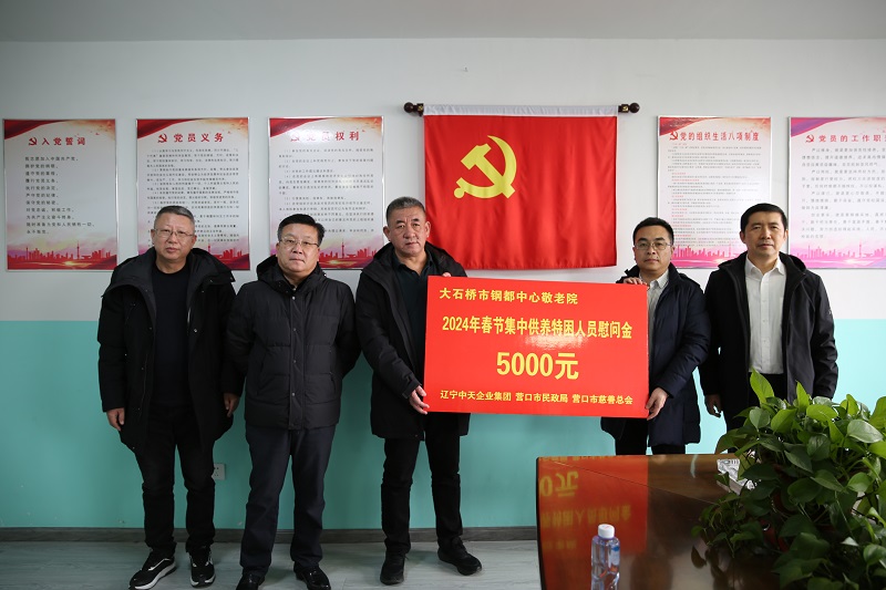 2024年1月30日,集團(tuán)行政人力資源總監(jiān)張瑞強(qiáng)隨營(yíng)口市慈善總會(huì)副會(huì)長(zhǎng)黃渤及營(yíng)口市民政局副局長(zhǎng)王貴鵬一行走訪慰問(wèn)大石橋市鋼都區(qū)域性中心敬老院、大石橋市湯池區(qū)域性中心敬老院,代表中天企業(yè)集團(tuán)向機(jī)構(gòu)負(fù)責(zé)人詢(xún)問(wèn)了機(jī)構(gòu)相關(guān)情況和目前面臨的困難,表態(tài)中天集團(tuán)將繼續(xù)關(guān)注困難群眾需求,以企業(yè)之力建立好關(guān)愛(ài)服務(wù)的長(zhǎng)效機(jī)制。此前集團(tuán)向營(yíng)口市慈善總會(huì)捐款5萬(wàn)元,定向用于大石橋市鋼都區(qū)域性中心敬老院等三個(gè)單位、蓋州市九寨中心敬老院等九個(gè)單位集中供養(yǎng)特困人員,希望幫助他們歡度一個(gè)快樂(lè)祥和的春節(jié),用實(shí)際行動(dòng)詮釋了民營(yíng)企業(yè)的責(zé)任與擔(dān)當(dāng)。