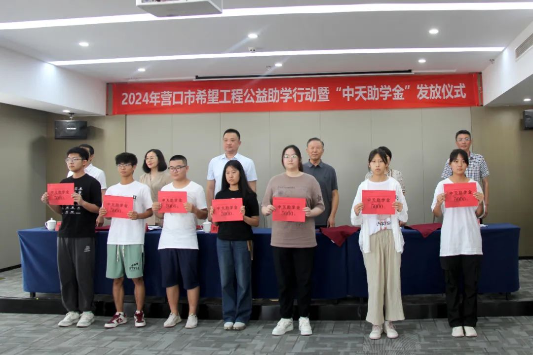 8月9日下午,2024年?duì)I口市希望工程公益助學(xué)活動(dòng)暨“中天助學(xué)金”發(fā)放儀式在中天集團(tuán)總部會(huì)議室舉行。營(yíng)口市團(tuán)市委副書記(主持工作)劉慶男,中天企業(yè)集團(tuán)董事長(zhǎng)于寶權(quán)、總裁于洪波,營(yíng)口市團(tuán)市委副書記梁嫚,營(yíng)口市招生考試委員會(huì)辦公室主任崔玉琪,營(yíng)口市慈善總會(huì)副會(huì)長(zhǎng)黃渤以及獲得資助的32名學(xué)生,出席了本次發(fā)放儀式。