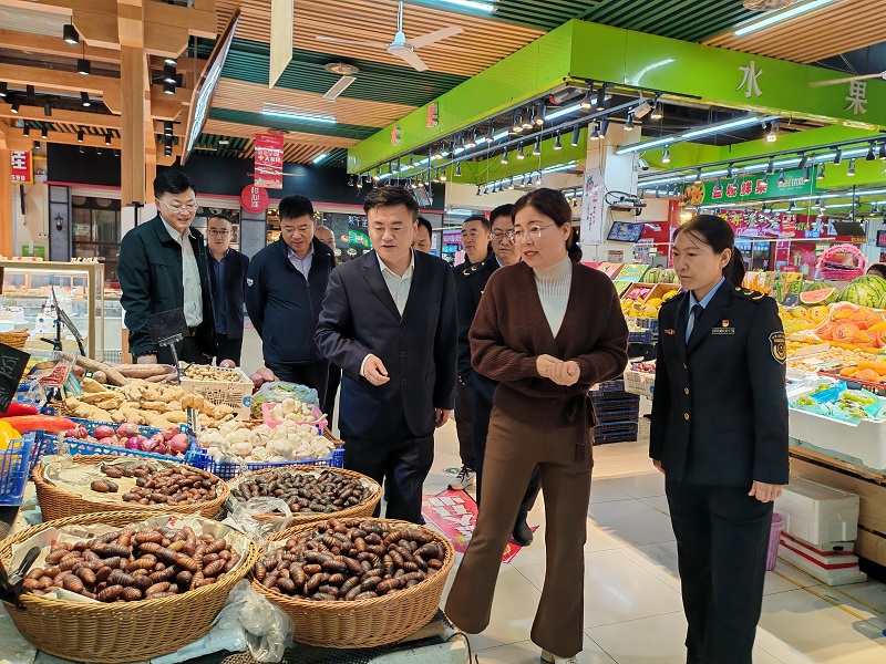 9月30日上午,營口市市場監管局黨組書記、局長欒勇帶隊到農貿公司桃花源店,實地檢查督導節前市場經營、食品安全、安全生產等工作。