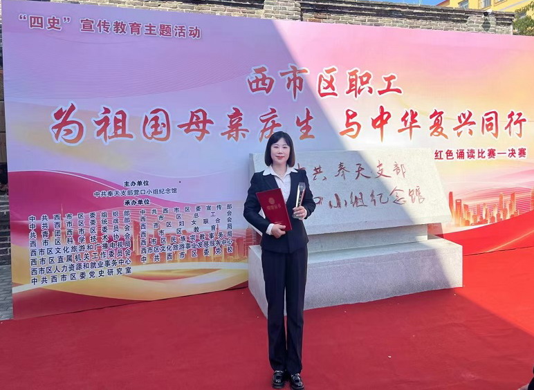 此次比賽采取誦讀紅色經典的形式,歌頌偉大祖國,展示西市區機關干部和職工在黨的領導下跨越趕超的精神,以及在全面建設社會主義現代化國家新征程上闊步前行、奮力譜寫中國現代化精彩篇章的堅定決心。經過前期預賽的激烈角逐,共有16個作品晉級決賽。由中天集團選送的作品——農商公司綜合管理部經理盧世蓮誦讀的《黨的贊歌》,在眾多作品中脫穎而出,盧經理的誦讀展示了中天集團全體干部職工擔當實干、拼搏向上的精神風貌,獲得評委的一致好評,獲得三等獎。