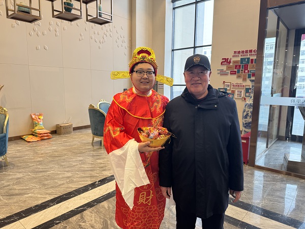 收到巧克力和糖果的業主還與“財神”合影留念,“恭喜發財”、“新年快樂”等祝福語不絕于耳。業主開心地說:“今天清早出門就遇上財神,真開心。”業主們看到財神爺,紛紛上前沾財氣,與財神合影。財神爺念著“新年好、身體健康、家庭幸福”祝福語,為業主們送上春節的祝福。業主們接過財神的財,沾上財神的福氣,希望在新的一年里身旺、財旺、運氣旺。歡聲笑語溢于言表,不少業主表示禮輕情意重!感謝各位業主家人們對我們服務的支持與認可,中天物業繼續堅持“放心管家,服務到家”,為業主提供更好、更優質的服務。
