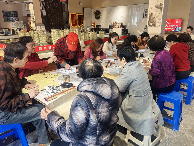 活動現場的沉浸式體驗更顯巧思,來賓在專業指導下完成"家""和""園"等主題創作,筆墨間勾勒出對未來生活的期待。特別設置的"書法盲盒"活動,將戶型圖、園林效果圖以卷軸形式呈現,每幅作品展開都是驚喜。這種參與式營銷讓潛在客戶在文化共鳴中建立起情感認同。