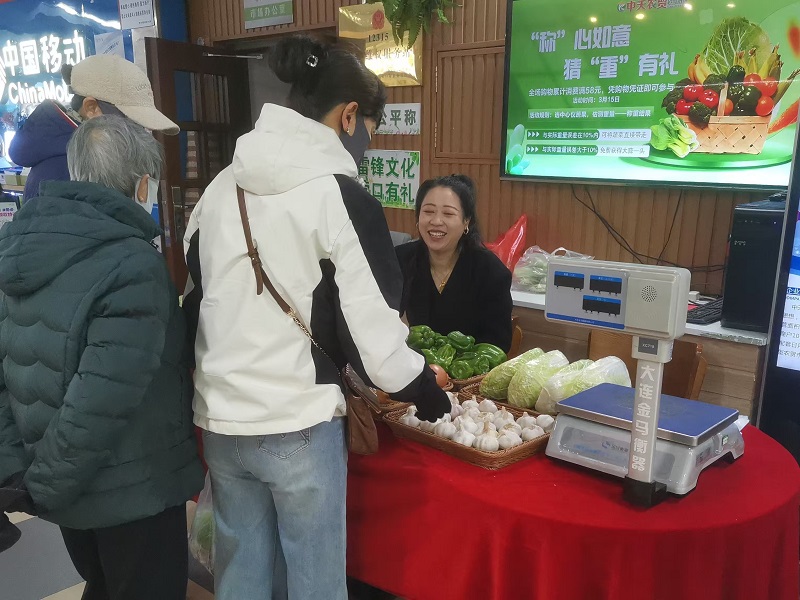 活動規則簡單有趣,顧客只需全場購物累計消費滿58元,即可憑消費憑證參與活動,隨意選擇一種蔬果并估測其重量,如果與實際重量誤差在10%以內,即可免費獲得;如果誤差超出,則可得到鼓勵獎——大蒜一頭。這種“贏也贏,輸也贏”的玩法,讓顧客們樂此不疲。