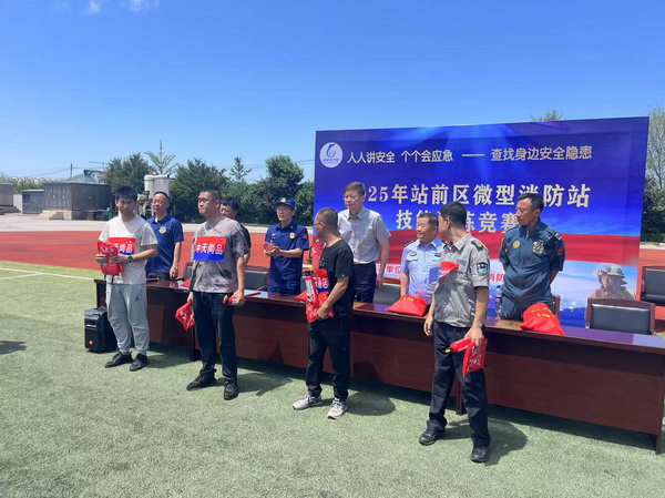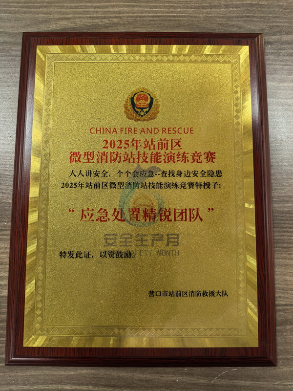 競賽緊扣實(shí)戰(zhàn)需求,設(shè)置水槍水帶連接賽、傷員擔(dān)架救援賽、防護(hù)裝備穿戴賽、滅火器識(shí)別選擇賽、消防知識(shí)挑戰(zhàn)賽等五個(gè)比賽項(xiàng)目,全面檢驗(yàn)選手的體能、技能和團(tuán)隊(duì)協(xié)作能力,充分展現(xiàn)現(xiàn)代化救援技術(shù)。中天物業(yè)最終獲得由站前區(qū)消防救援大隊(duì)頒發(fā)的二等獎(jiǎng)“應(yīng)急處置精銳團(tuán)隊(duì)”牌匾。
