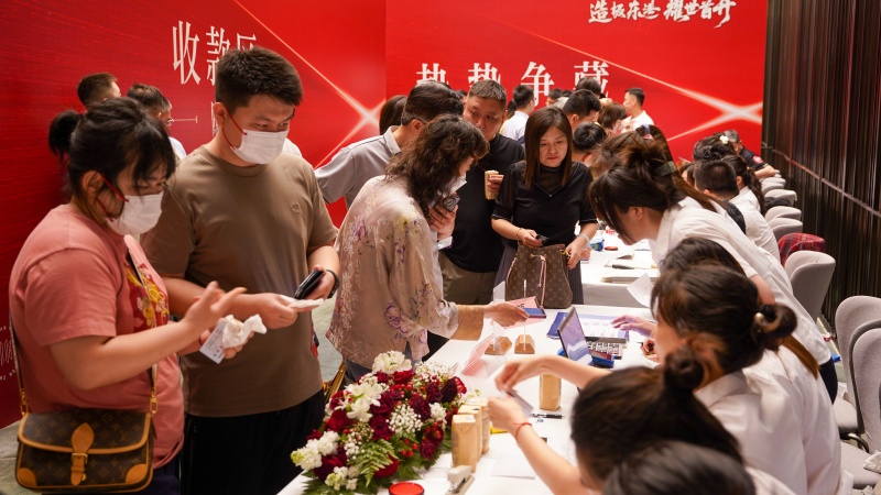簽到完成后,客戶們有序步入等候區內,精致的茶歇、舒緩的背景音樂、柔和的燈光營造出典雅氛圍,盡管現場人頭攢動,但在工作人員的精心安排下,一切都井然有序,讓客戶在等待的過程中也感受到了舒適與愜意。