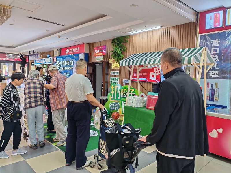 本次活動采用“三骰同擲”趣味玩法,獎項驚喜連連:擲中“豹子6”即可直接抱走精美月餅禮盒1份;搖出“豹子”可贏取實用精品防滑凳1個;收獲“順子”即可喜提時尚購物毛氈包1只;出現“對子”則即獲贈雨森品牌紙抽1包。規則清晰易懂,讓顧客在購物間隙盡享歡樂體驗。同時,聯合商戶推出特價商品,點燃購物熱情,讓顧客既能收獲真真切切的實惠,又能通過輕松互動提升購物體驗,傳遞濃濃節日祝福。