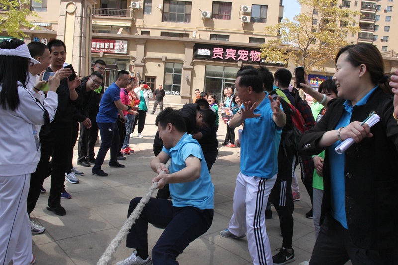 伴隨著于總一聲令下,比賽正式開始。本屆運動會共設團體和個人兩類項目。團體賽共分拔河、三腳接力、齊心協力、托球接力和合作運球接力五項比賽。個人比賽為跳繩和乒乓球。首先進行的是拔河比賽,各代表隊分別派出10名選手參賽。隨著裁判員哨音響起,鑼鼓聲、吶喊聲響成一片,每一組比賽都在愉快的笑聲和遺憾聲中結束。經過激烈角逐,物業(yè)公司、萬豪酒店、天運公司公司進入半決賽,按照抽簽的順序,物業(yè)公司對天運公司爭奪決賽權,農貿公司因抽簽進入復活賽與萬豪酒店爭奪另一個名額。經過激烈的比賽,物業(yè)公司和萬豪酒店進入了最后的決賽。又是一片吶喊和力量的較量,最后,萬豪酒店取得拔河賽冠軍。