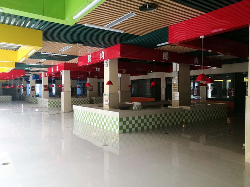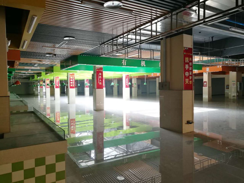 工程 – 在中天集團各建筑、裝飾公司所有員工夜以繼日的努力下,將工期縮短至3個月,地面鋪裝、吊燈安裝等現已全部安裝完畢,于2017年6月末市場一裝收尾工作正式結束,市場已完全具備開業條件。每位到訪的商戶走進中天農貿超級市場,都對我們市場的高標準裝修風格給予了極高的評價和肯定,同時也堅定了他們投資信心。隨著市場整體驗收的進行,預計8月初所有簽約商家即可進行商鋪二裝,市場定于9月中旬盛大開業。